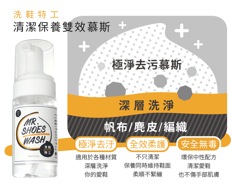 台灣 T-FENCE Mr. SHOES WASH 洗鞋特工 清潔保養雙效慕斯 (含鬃毛刷)