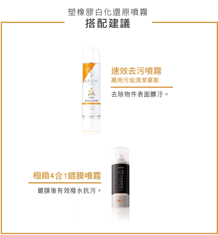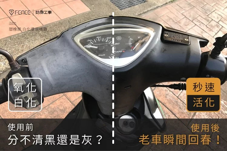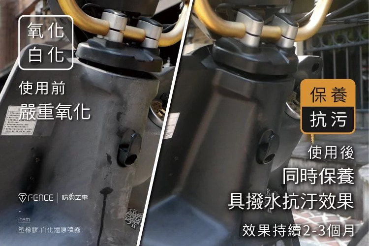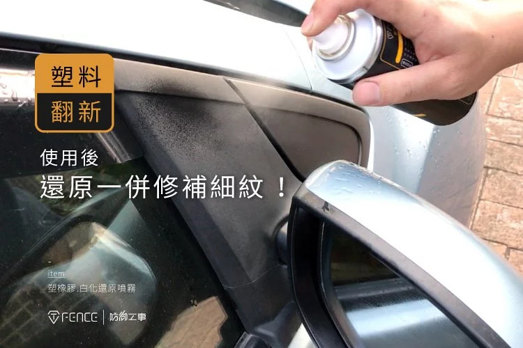 書包/細袋有D明明黑色既塑膠配件,但用得耐之後就變得灰灰白白咁,搞到成個袋又殘又舊🤔而愛車、雨鞋都一樣灰頭土臉好殘舊~原來係塑料部位都氧化到發白👉🏻氧化白!!但要將佢地回復亮麗原色都好容易架🌟💁🏻‍♀️塑橡膠白化還原噴霧,保養抗氧化!😎特殊變性矽光油,與塑料、橡膠反應後,極度迅速還原,肉眼馬上可見👏🏻👏🏻👏🏻活化同時修復細部刮痕及擦傷,奈米等級分子快速滲透,覆蓋率百分百💯不含石油溶劑、不侵蝕車漆及素材,秒速活化,要愛車煥然一新!