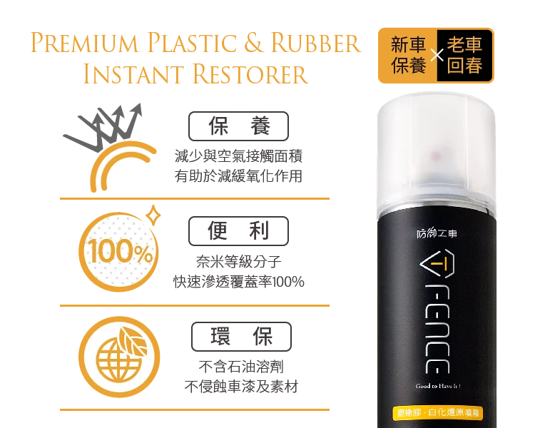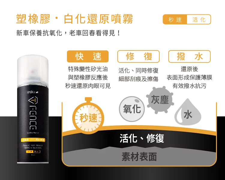 台灣 T-FENCE 塑橡膠白化還原噴霧|塑料/輪胎/保險桿 250ml
