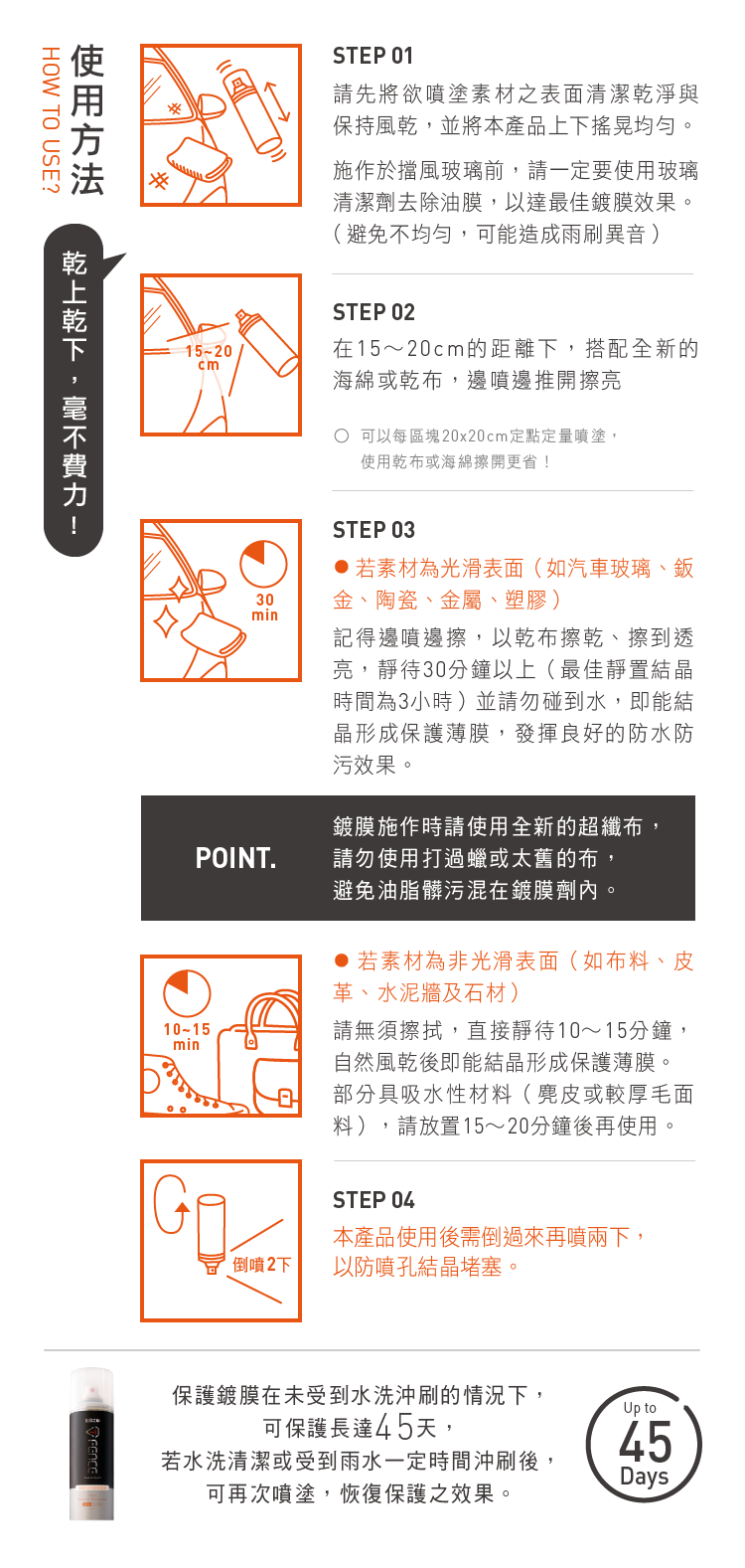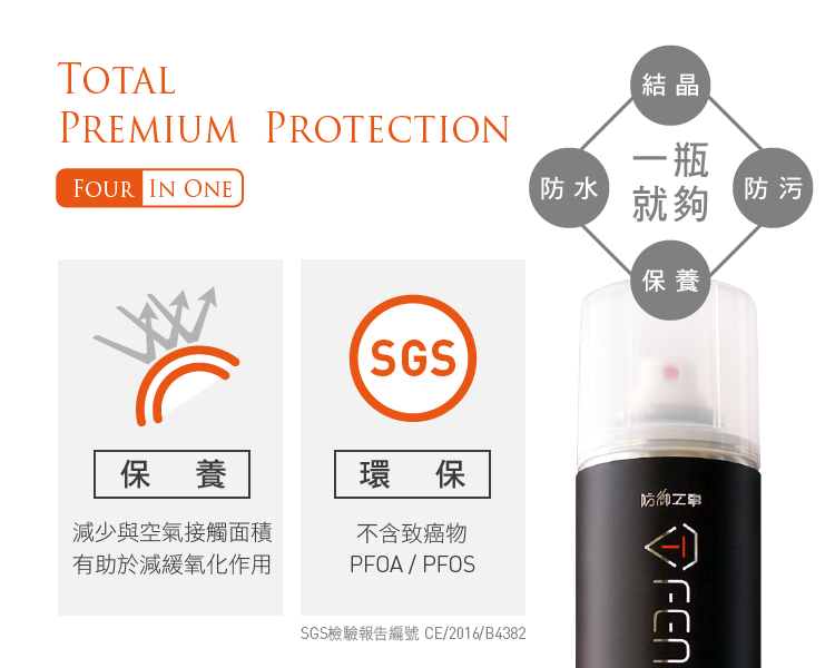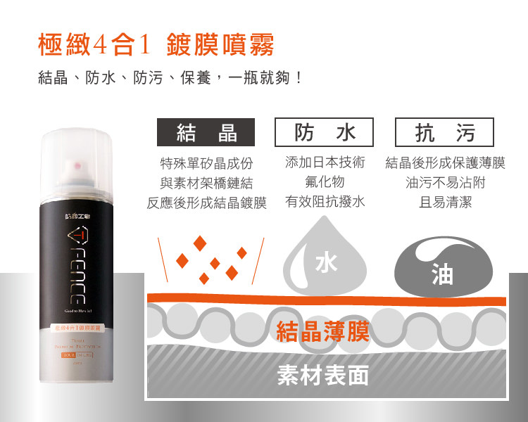 結晶、防水、防汙、保養極緻4合1,一瓶搞定!