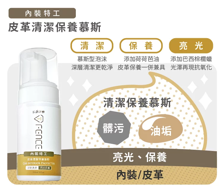 台灣 T-FENCE 內裝特工保養清潔慕斯|皮革/儀表板 120ml (含毛巾)