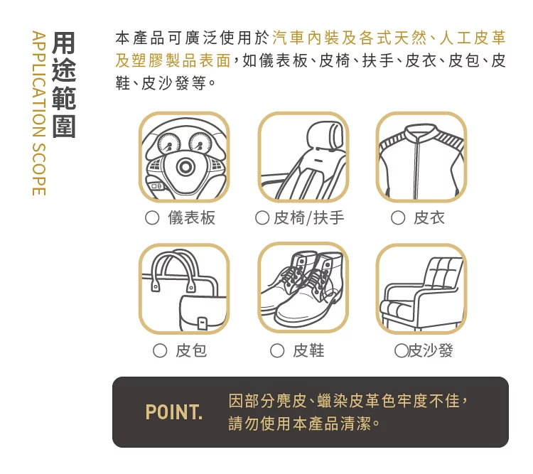 還記得愛車一到手,內裝皮件的光澤和無暇多麼動人。隨著時間的推移,你也漸漸淡忘它原本的樣貌。找回最初的美好其實很簡單,不只亮麗如新,更要十年如一!