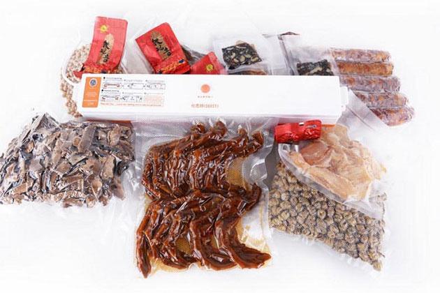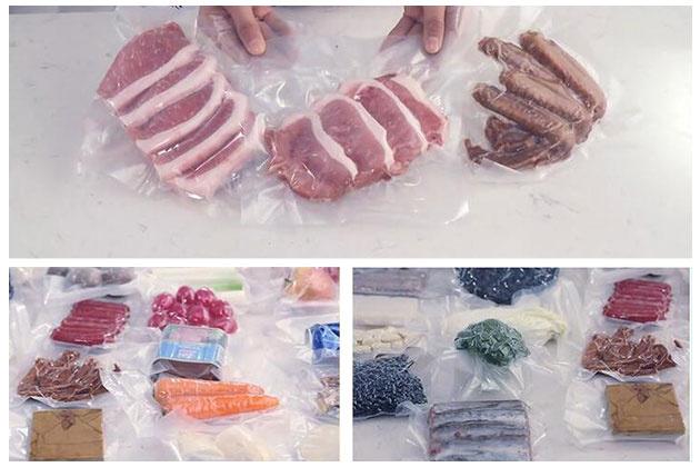 4 能包裝乾的東西,或者剛洗淨的魚,果蔬,鹵菜等表面濕的也可以。水分或者油分太多會流到袋子底部的情況都是不可以的。太多水份產品要冷凍後才可真空或者直接封口