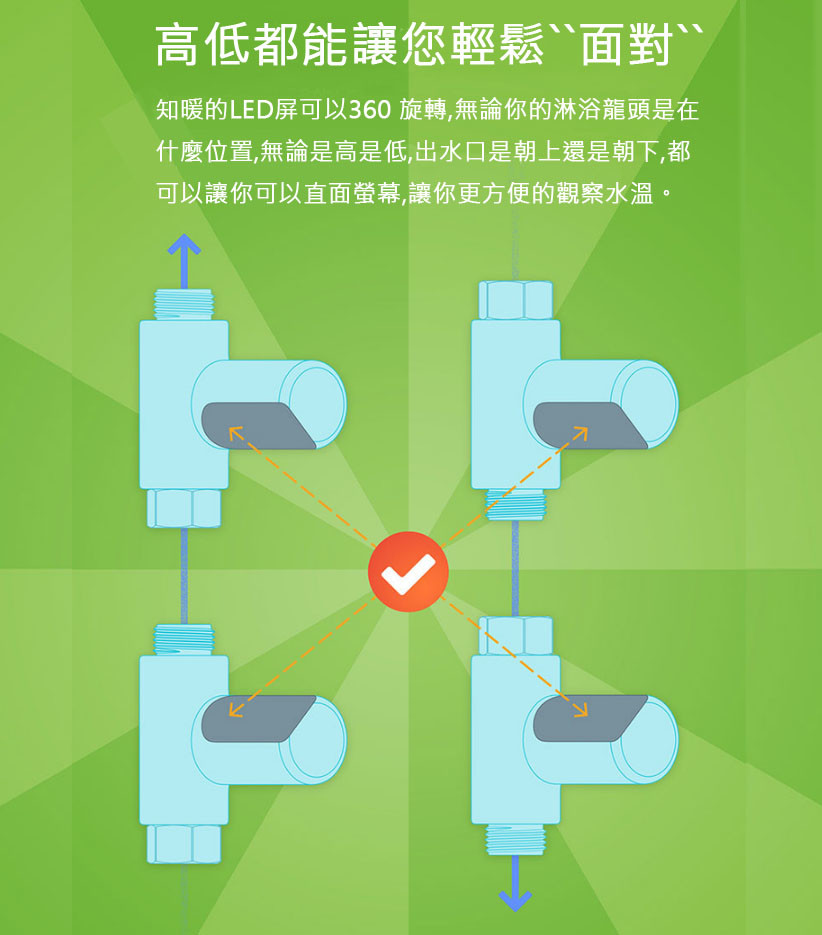 喜歡洗熱水澡的人不論淋浴或泡澡,都可以洗到將近20分鐘以上但心裡常常有一個疑惑”究竟我們的洗澡水溫度到底是幾度阿?雖然說只要不燙傷或是過冷都無傷大雅,但怎樣的溫度對人體才是最健康的?尤其是BB的皮膚比我們還要嬌嫩,用大人的體感溫度去調整水溫,然後幫小孩洗澡,只要安裝在龍頭出水口,即可感應溫度,讓你知道每天的洗澡水溫度是多少喔,尤其家裡有小孩的人,可以幫小孩調整最適當的水溫!