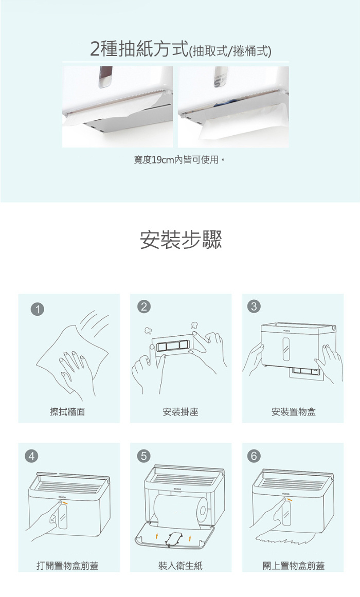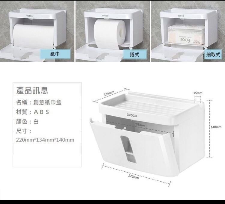 免鑽洞 多功能收納面紙盒 衛生紙盒 抽取式 捲筒式 廚房紙巾 可放手機 置物 免釘 防水 防潮 浴室 浴廁 廚房