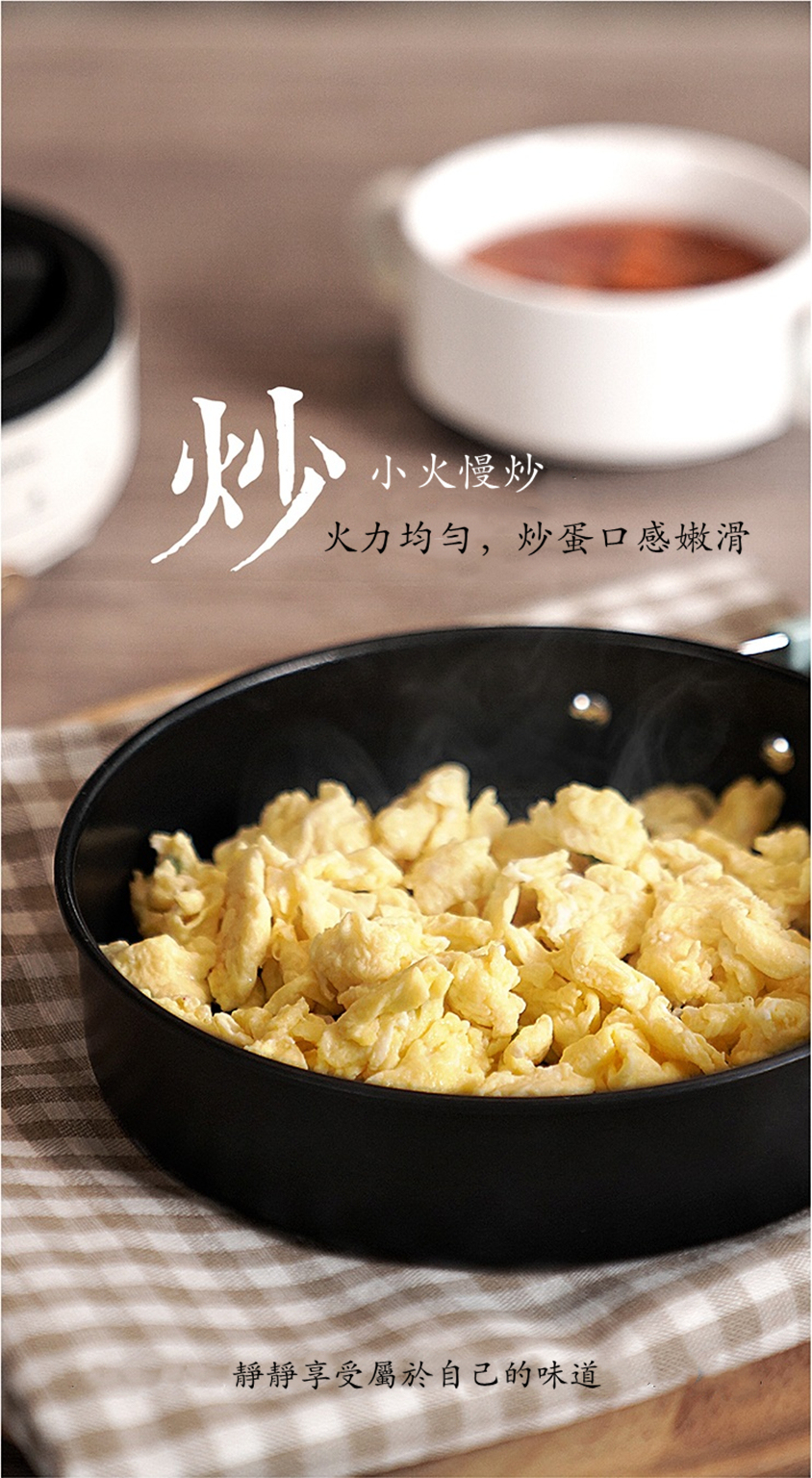 ✅分離式底座設計,通過底部發熱盤加熱使用,底部受熱更均勻,分離出的鍋具能直接水洗(發熱底座除外)