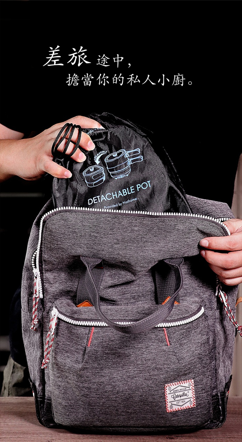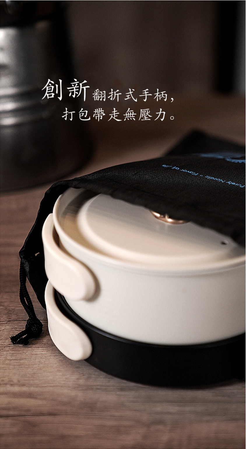 ✅緊湊型設計,底座,煎鍋等都可直接折叠放入煮鍋,搭配收纳袋,旅行出差,輕鬆便攜。
