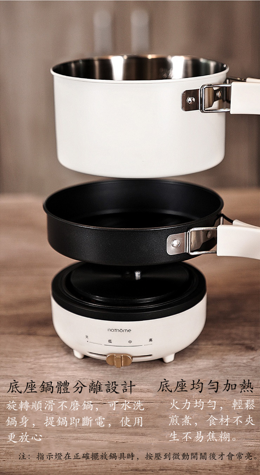 ✨配件內容:發熱底座*1、煎鍋*1、煮鍋*1、電源線*1、收納袋*1、說明書*1