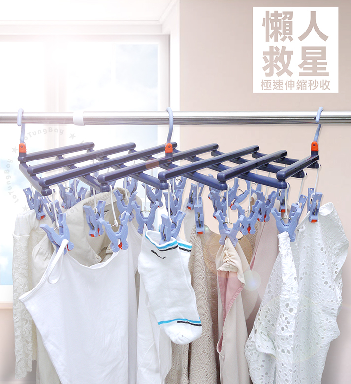 一秒收衫伸縮衣架,日台熱賣產品,夾穩衣物不留下壓紋,一下便可收晒所有衣服,伸縮設計非常慳位!